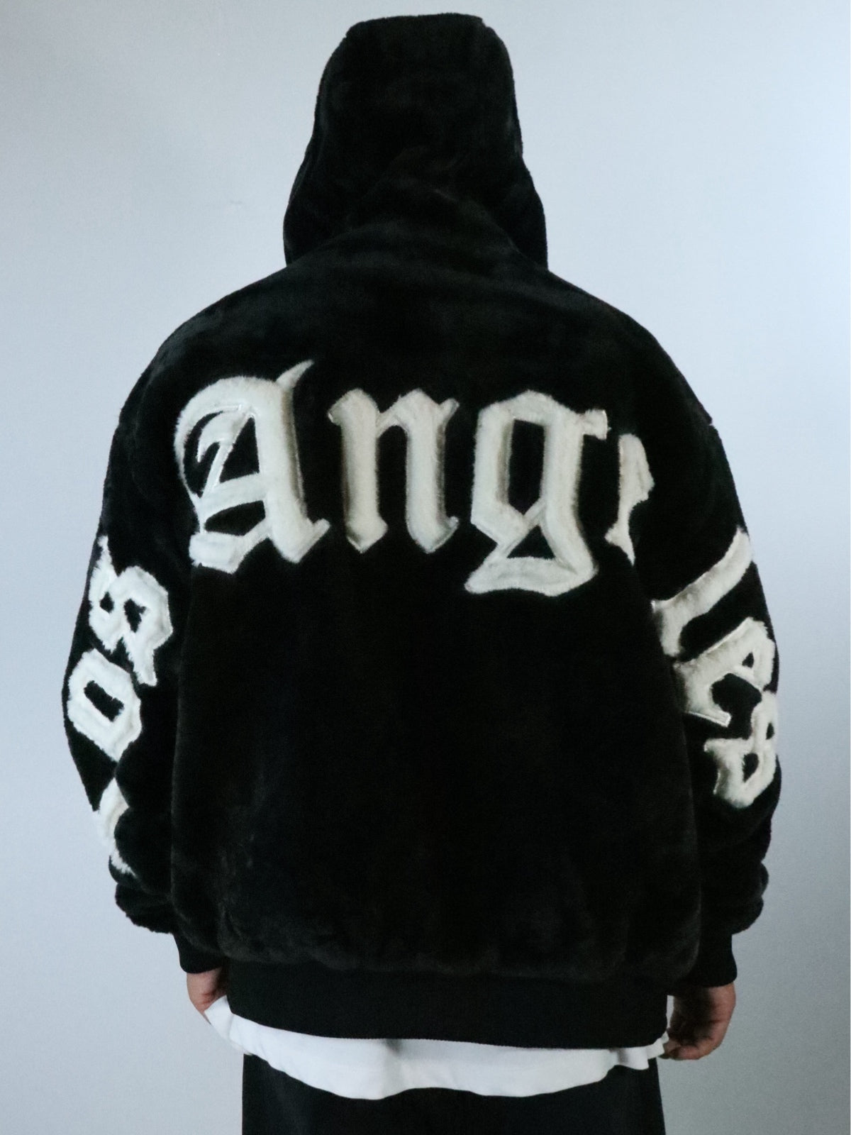 Pelliccia Angels cappuccio nero uomo