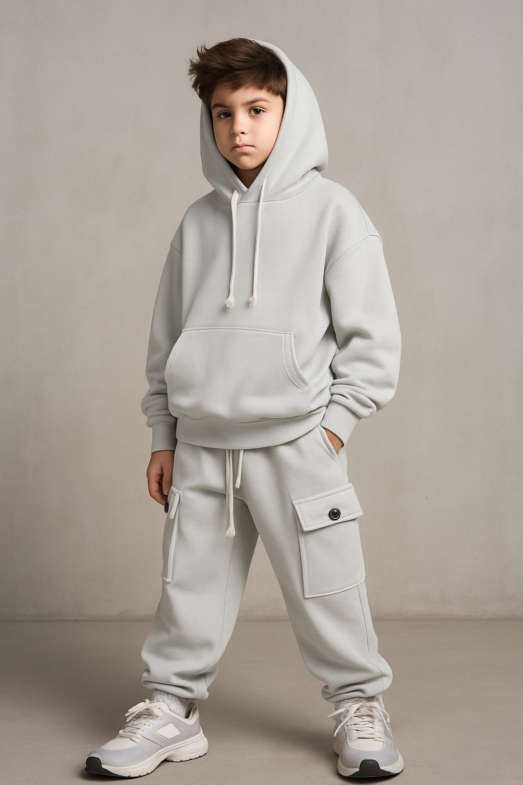 Completo cargo felpa drip basic bambino grigio