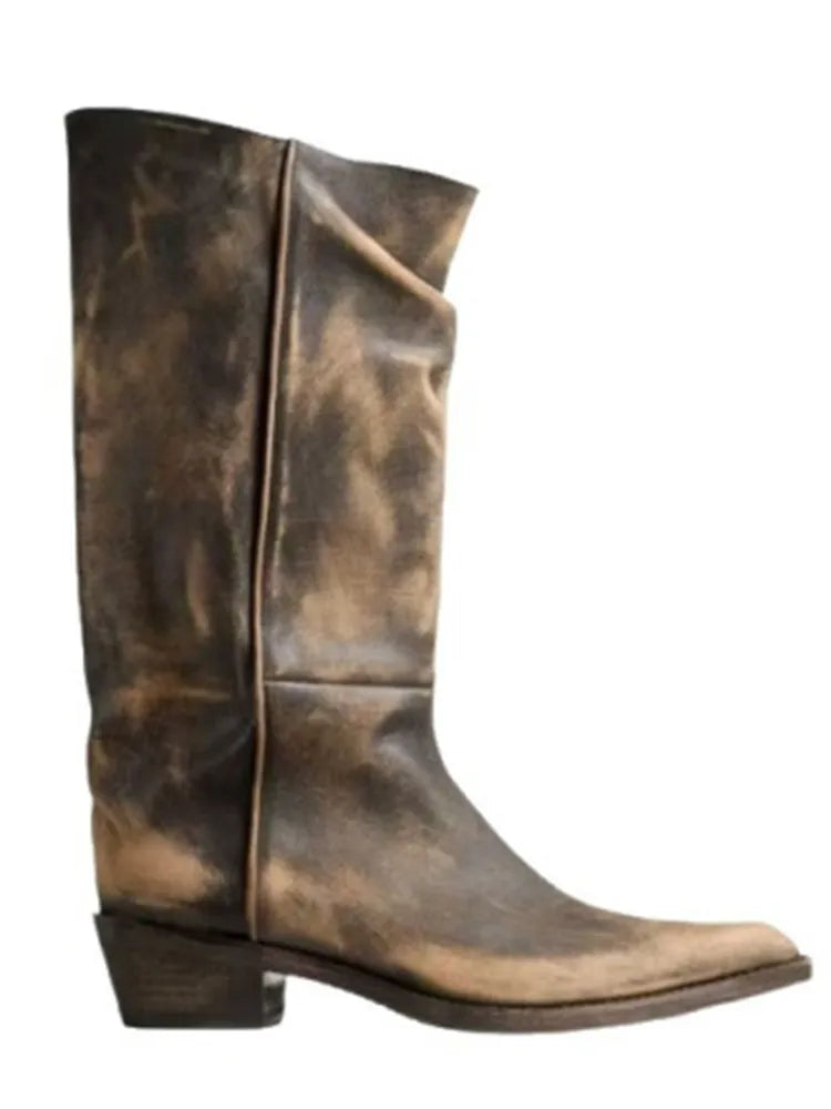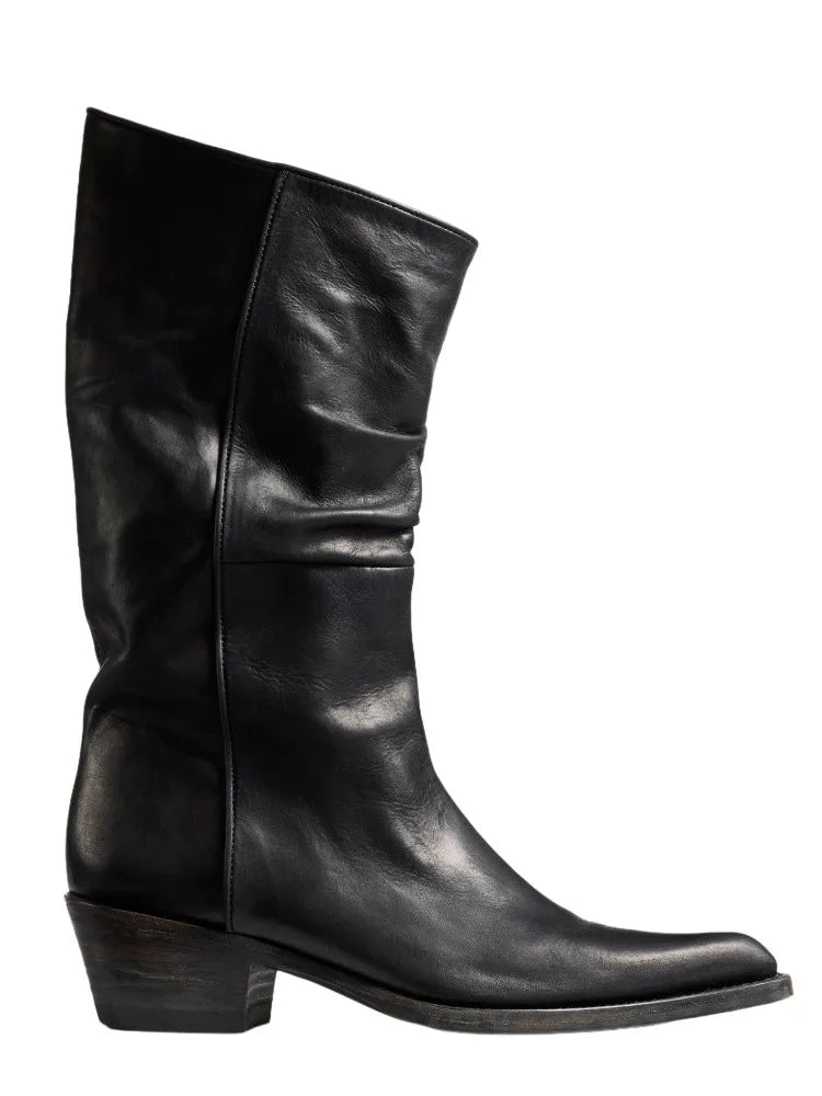 Autumn and Winter New Mid Length Pleated Women's Boots with Pointed, Thick, Low Heel Casual Knight Boots 35-46 Calf Boots