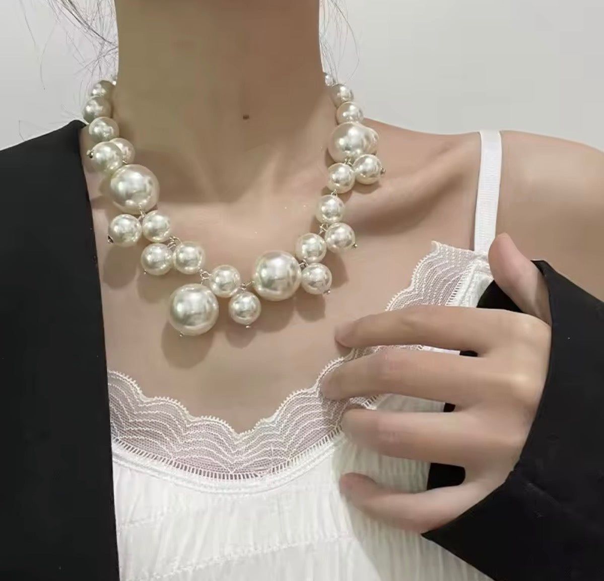 Collana Maxi Perle Chunky Statement – Girocollo Elegante con Perle Oversize Lucide- MUST HAVE (immagine 3)| badpeople.it