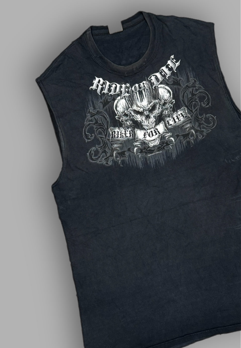 Guida con stile in questo T-shirt vintage "Ride or Die" taglia XL. Fai sentire il tuo lato ribelle con questo design unico. Realizzato con materiali di alta qualità, questo T-shirt è perfetto per gli amanti dello stile retrò. Mostra il tuo spirito libero e il tuo amore per la moda con questa maglietta unica!